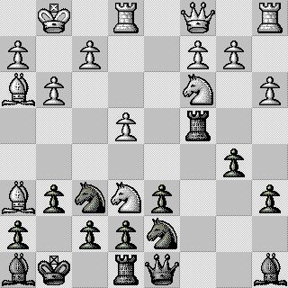 1.e4 c5 2.Sf3 d6 3.d4 cxd4 4.Sxd4 Sf6 5.Sc3 a6 6.Le2 b5 7.a3 Lb7 8.Lf3 Sbd7 9.O-O g6 10.Te1 Lg7 11.Le3 O-O 12.g3 Tc8 13.Lg2 La8 14.Dc1 Te8 15.Lh6 Lh8 16.Lh3 Tc4