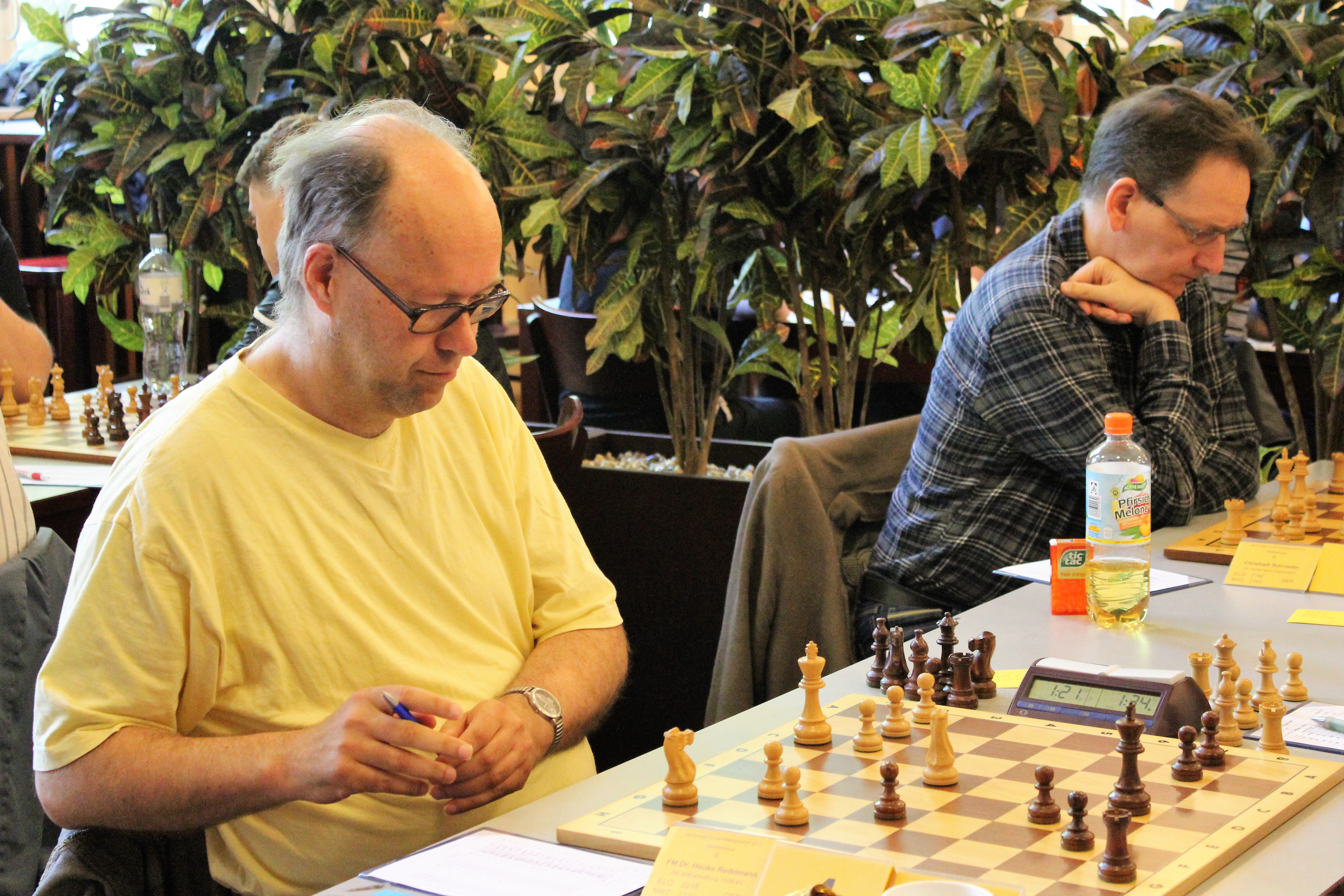 1.d4 Sf6 2.Lg5 Se4 3.Lf4 e6 4.Sd2 f5 5.e3 Sc6 6.c3 b6 (HR macht ganz normale Eröffnungszüge,