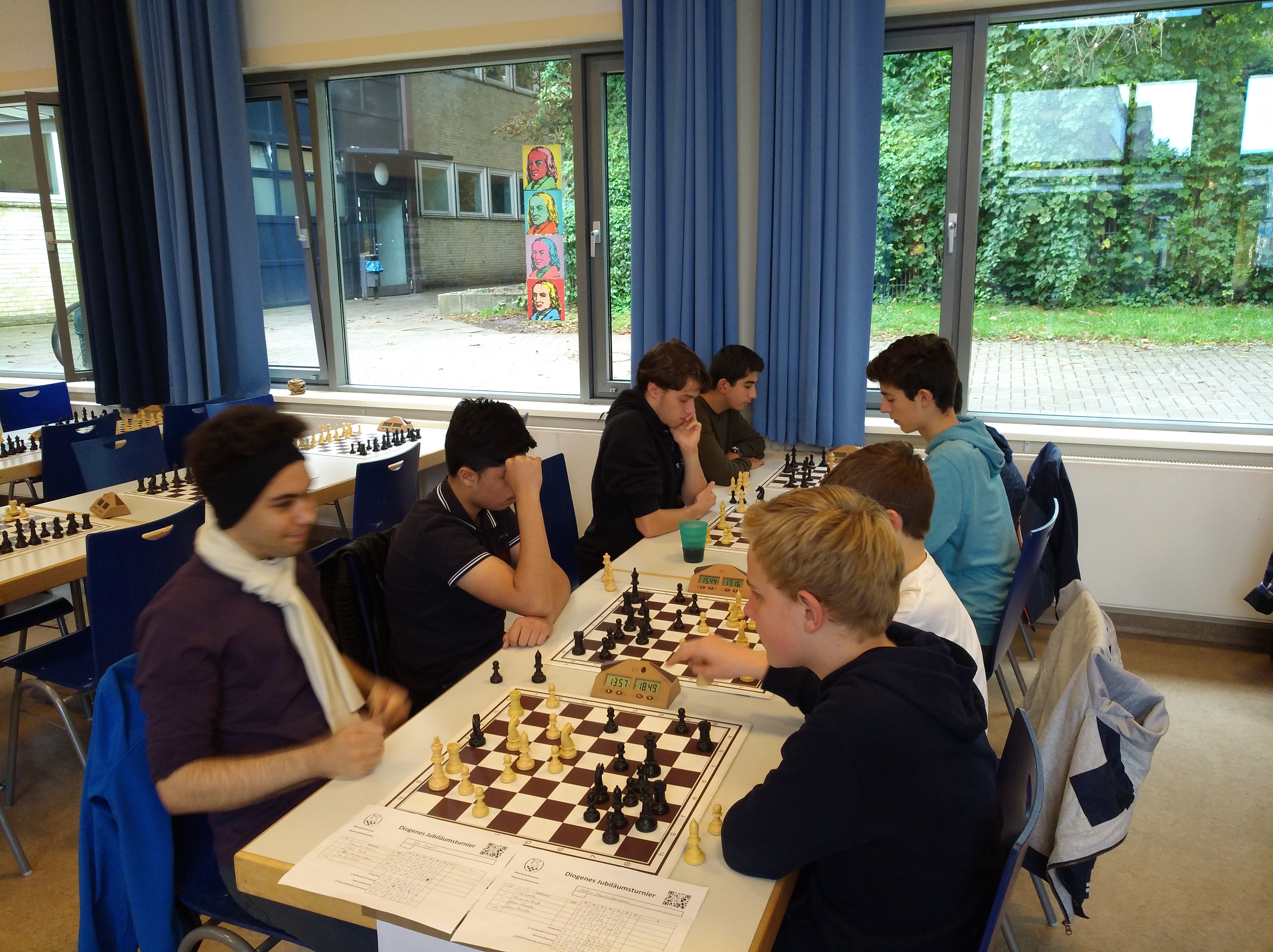Das HSG hat in diesem Jahr erneut an den Schulmannschaftsmeisterschaften im Schach teilgenommen. Aufgrund von Kollisionen mit Klausuren und Krankheitsfällen konnten wir nur zu siebt antreten, sodass wir in jedem Spiel bereits einen Punkt hinten lagen. Außerdem musste die HSG-Mannschaft in diesem Jahr einen Aderlass wegstecken, da gleich drei Spieler im letzten Jahr ihr Abitur geschafft haben. Dennoch gelang dem Team das Kunststück, die Platzierung des letzten Jahres exakt erneut zu treffen, bei einem stark gewachsenen Teilnehmerfeld. So wurden wir mit 9:5 Mannschaftspunkten und 28,5 Brettpunkten 7. von 28 teilnehmenden Schulen. Witzigerweise haben die Bretter 1 - 4 in den ersten 5 Runden exakt gleich gespielt. Dahinter zeigten auch die jüngeren Spieler ihren Gegnern Zähne und glichen ein ums andere Mal unser leeres Brett 8 aus. Vom SKW dabei waren Habib Majidi und Ali Assadollah an Brett 1 und 2 und natürlich René Lohmann, der nun im ersten Jahr als Betreuer mitgekommen ist. So konnte er dann auch gleich mit Habib, Ali und Berdan weiter zum Jugendmannschaftskampf des SKW gegen Bergstedt fahren.