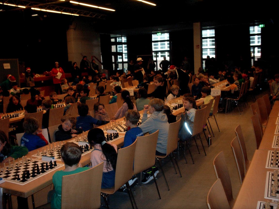 Lionel hätte als Erstklässler natürlich in Gruppe 2 starten können und dort große Chancen auf einen Pokal gehabt. Sportlich wäre es jedoch keine große Herausforderung gewesen, und es gab auch aus Mangel an Mitschüler:innen keine Pokalaussicht in der Schulwertung, was ein Argument für Gruppe 2 hätte gewesen sein können. In Gruppe 1 konnte er tatsächlich auch gut mithalten. Er gewann 5 von 7 Partien und holte damit Platz 21 von 140 Teilnehmer:innen, von denen die meisten aus den Klassen 3 und 4 kamen. Zum Vergleich und zur Verdeutlichung des Potenzials: Justus, der nach DWZ momentan unser bester Jugendspieler ist, holte bei seiner ersten Teilnahme als Viertklässler nur Platz 61.