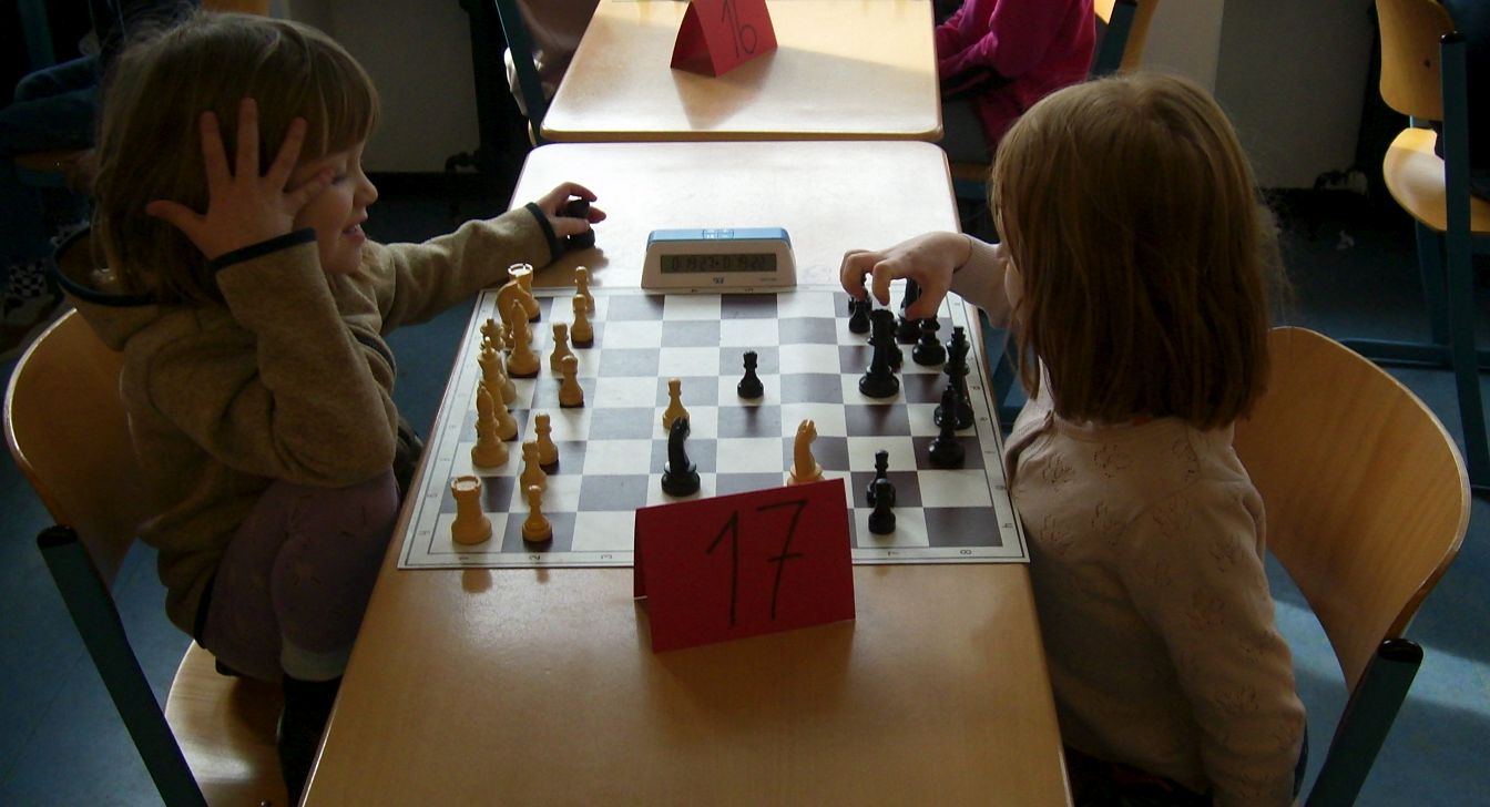 Beide gewannen und freuten sich sehr. Danach lief es für sie nicht mehr so gut. Vor der sechsten und letzten Runde hatten sie je zwei Punkte und wurden gegeneinander gepaart. Polly gewann. Mit drei Punkten und sehr niedriger Buchholz landete sie auf dem 33. Platz. Edda hatte die deutlich höhere Buchholz, konnte mit zwei Punkten trotzdem "nur" 38. von 45 Teilnehmer:innen werden. Hamza und Ubeyda ergatterten zwar bessere Plätze, hatten aber nicht ihren besten Tag. Bei Hamza könnte ein Trainingsrückstand der Grund dafür gewesen sein, bei Ubeyda ein Besuch von Verwandten. Jener wurde mit dreieinhalb Punkten und hoher Buchholz 20. und dieser mit viereinhalb Punkten und hoher Buchholz Zehnter. Dieser gewann damit gerade noch eine Medaille. Glückwunsch!